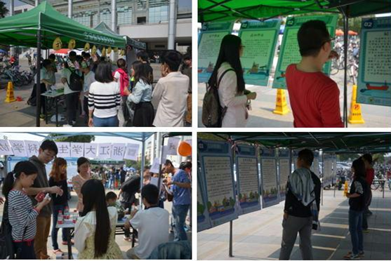 2015年10月17日中午时段,浙江大学生态科普校园行展览活动在浙江大学紫金港校区文化广场举行。本次活动由中国生态学学会、杭州市科学技术协会、浙江大学生命科学学院主办,浙大科协、浙大生科协承办,以及浙江大学学生节能减排协会、浙大绿之源协会、绿色浙江协办。活动声势十分浩大,现场气氛无比火热。 先后有近千人参观展览、签名响应、展示作品和参与知识问答。活动主体为观看生态环保道德知识展板——现场答题——领取奖品的形式,其中夹杂盆景介绍,垃圾分类等活动。现场人声鼎沸、川流不息。活动虽然在浙江大学内举办,但是受众却不仅仅是浙大学生,许多周边居民,外校学生,浙大校友也纷纷慕名参加。活动形式简捷明了,参与者积极性高。展板层次分明、内容清晰,参与者不知不觉中便沉迷其中。活动中不时有参与者向工作人员询问活动内容,注意事项,以及举办时间,说希望多多举办这样的活动。