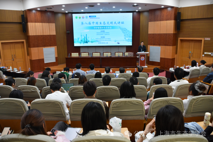 发布时间:2025-10-29 点击量:2932025年10月21日,第八届中国生态文明大讲坛“守护家园水生态安全”分会场在上海海洋大学成功举办。本次活动由中国生态学学会科普工作委员会、上海市生态学学会及上海海洋大学联合主办,上海海洋大学海洋科学与生态环境学院、上海市生态学学会水域与湿地生态专业委员会共同承办,上海市生态学学会宋坤副理事长主持。来自复旦大学、河海大学、华东师范大学及上海海洋大学等多所高校的专家及200名师生参加了本次活动。上海海洋大学科技处副处长张建恒在致辞中指出本届大讲坛对助推学校学科建设、科学研究与科普工作协同发展具有重要作用,并强调其作为113周年校庆重要活动,为营造浓厚学术氛围增添了强劲动力。海洋科学与生态环境学院