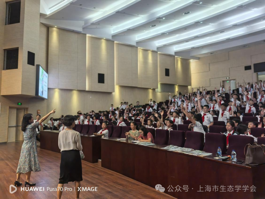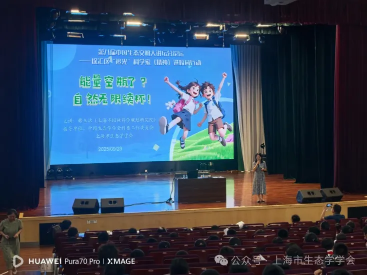 2025年9月23日,第八届中国生态文明大讲坛分论坛——徐汇区“追光”科学家精神进校园行动在上海市南洋初级中学植善堂顺利开展。活动由中国生态学学会科普工作委员会和上海市生态学学会主办,徐汇区青少年活动中心与上海市南洋初级中学联合承办。上海市园林科学规划研究院副院长、教授级高工韩玉洁以《能量空瓶了?自然无限续杯!》为题,为350多名师生带来一场融合生态科学与感官体验的自然疗愈科普讲座。