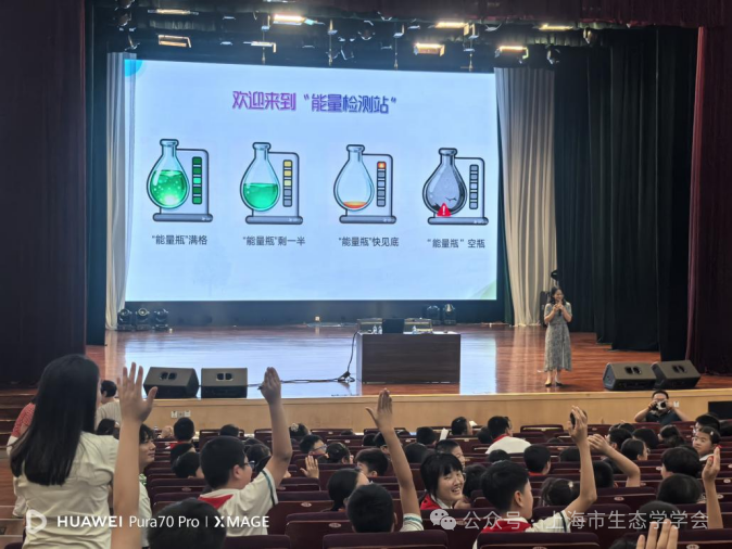 发布时间:2025-10-07 点击量:682025年9月23日,第八届中国生态文明大讲坛分论坛——徐汇区“追光”科学家精神进校园行动在上海市南洋初级中学植善堂顺利开展。活动由中国生态学学会科普工作委员会和上海市生态学学会主办,徐汇区青少年活动中心与上海市南洋初级中学联合承办。上海市园林科学规划研究院副院长、教授级高工韩玉洁以《能量空瓶了?自然无限续杯!》为题,为350多名师生带来一场融合生态科学与感官体验的自然疗愈科普讲座。